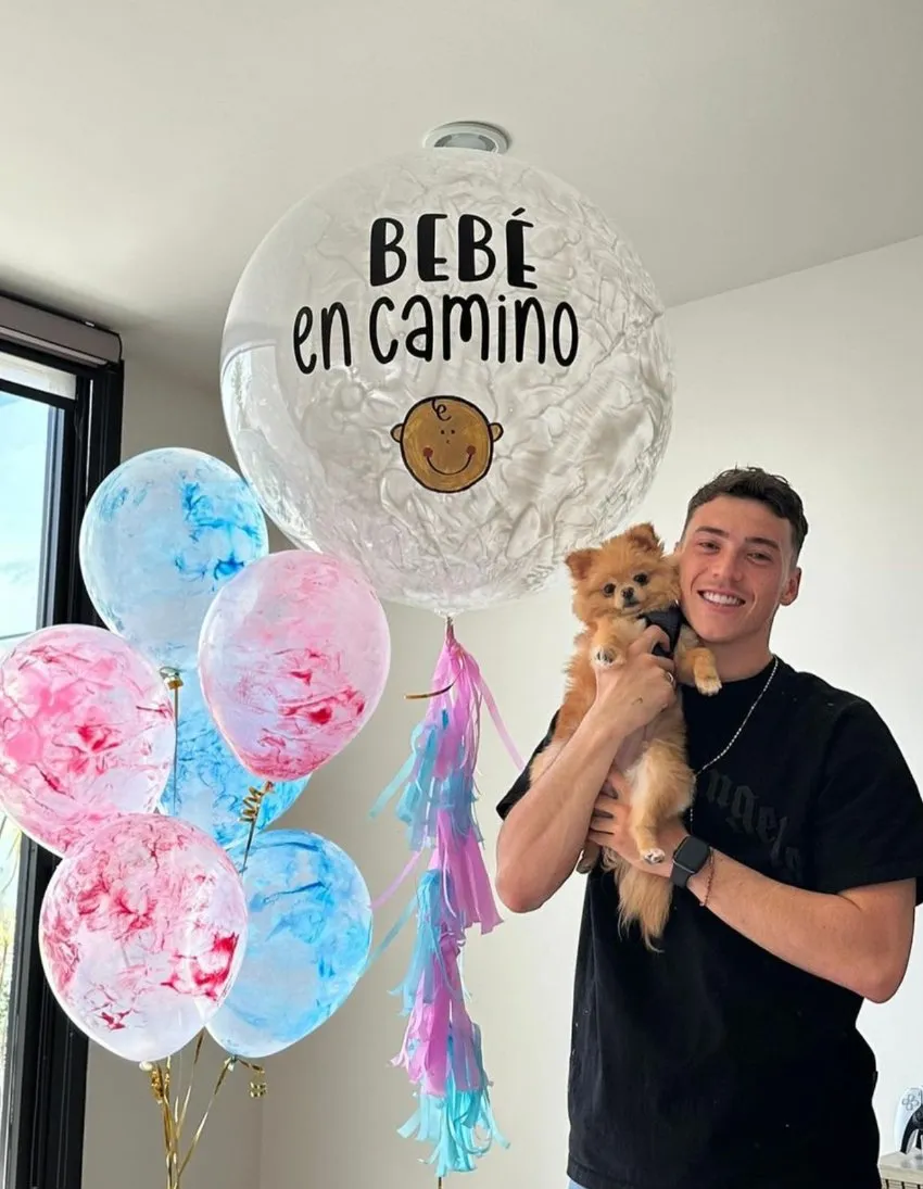 “Una bendición más, mi primer Día del Padre y ahora seremos 4”, escribió Viñas en referencia al bebé que está en camino y a su mascota.