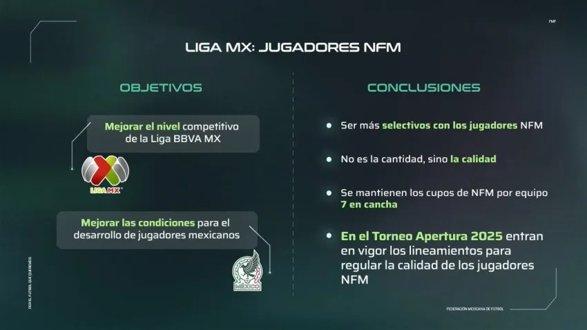 Ante esto, la Liga MX buscará tener más calidad siendo selectivos con los extranjeros que vengan al balompié nacional, por lo que se mantendrán los siete NFL permitidos en la cancha y para el Apertura 2025 será cuando inicien nos luegos lineamientos para contratar a jugadores extranjeros.