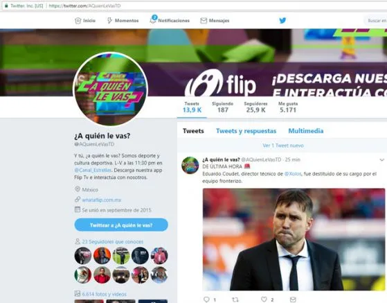 Es innegable que Televisa pasa por una enorme crisis de credibilidad, los ratings de casi toda la programación han bajado. Imagínese que el noticiero 'estelar' de deportes, llamado ¿A quién le vas?, suma MENOS de 26 mil seguidores en su Twitter, una verdadera miseria para la magnitud de empresa e inversión realizada, y de su rating mejor ni le cuento, porque NO cuenta.