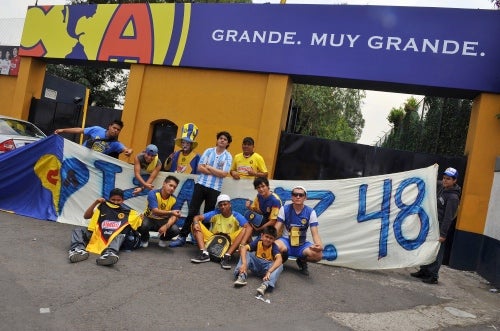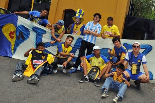 Porras como la 'Monumental', 'Disturbio' y 'Ritual del Kaos', visitaron al América para desearle suerte (FOTO: RICARDO FLORES)