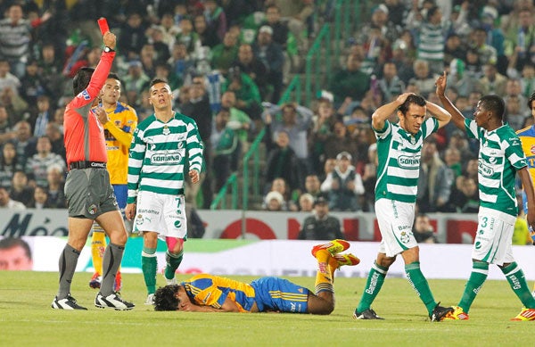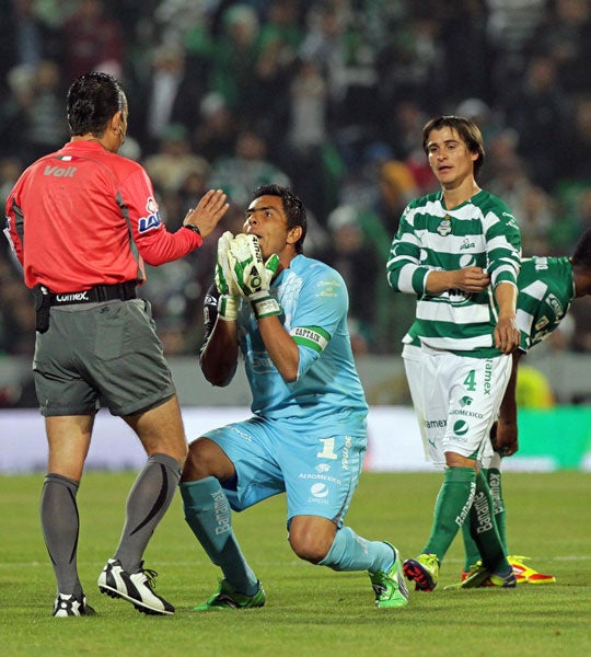 Oswaldo Sánchez reclamó la expulsión a Paul Delgadillo. FOTO: MIGUEL PONTÓN