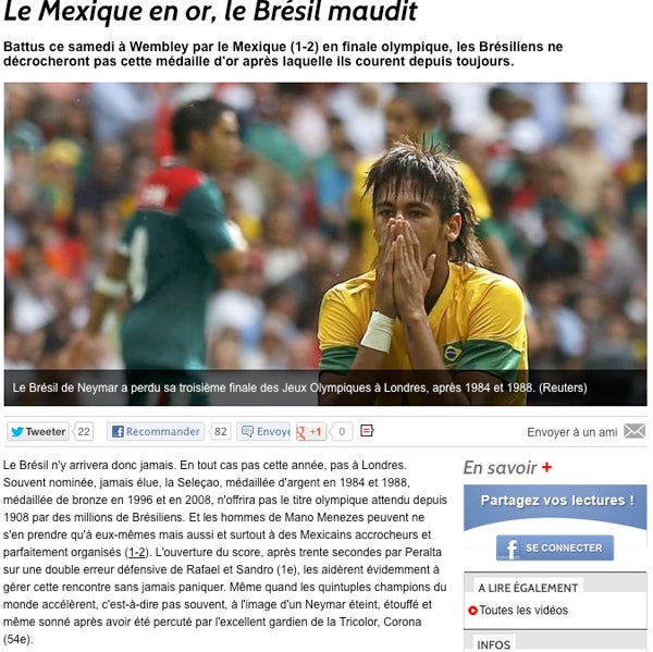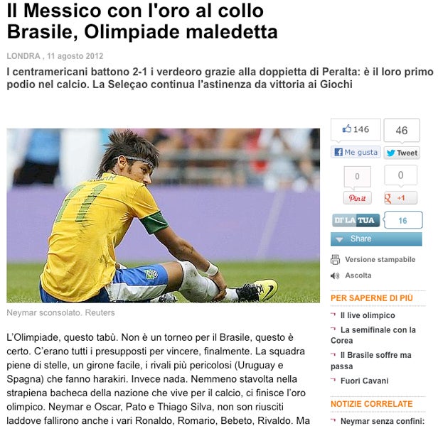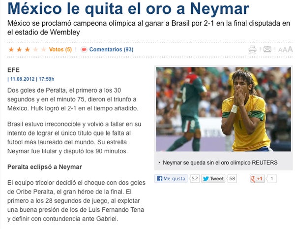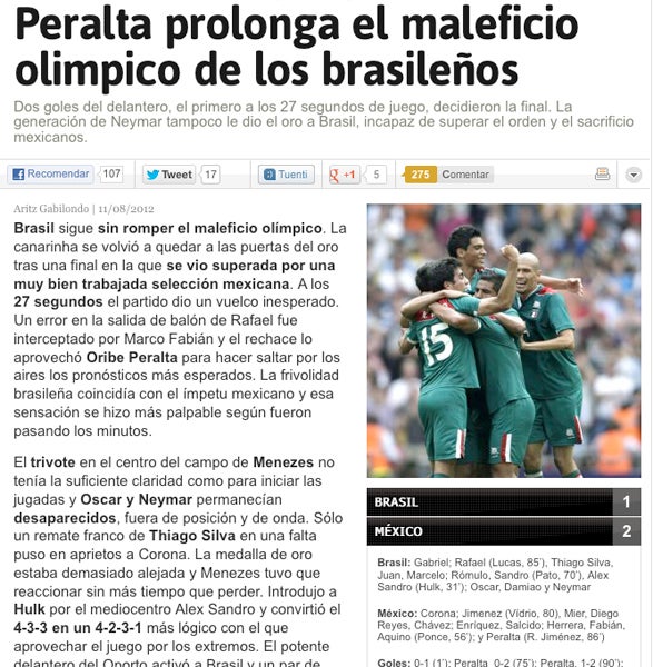 El diario sport 'México le quita el oro a Neymar' | INTERNET