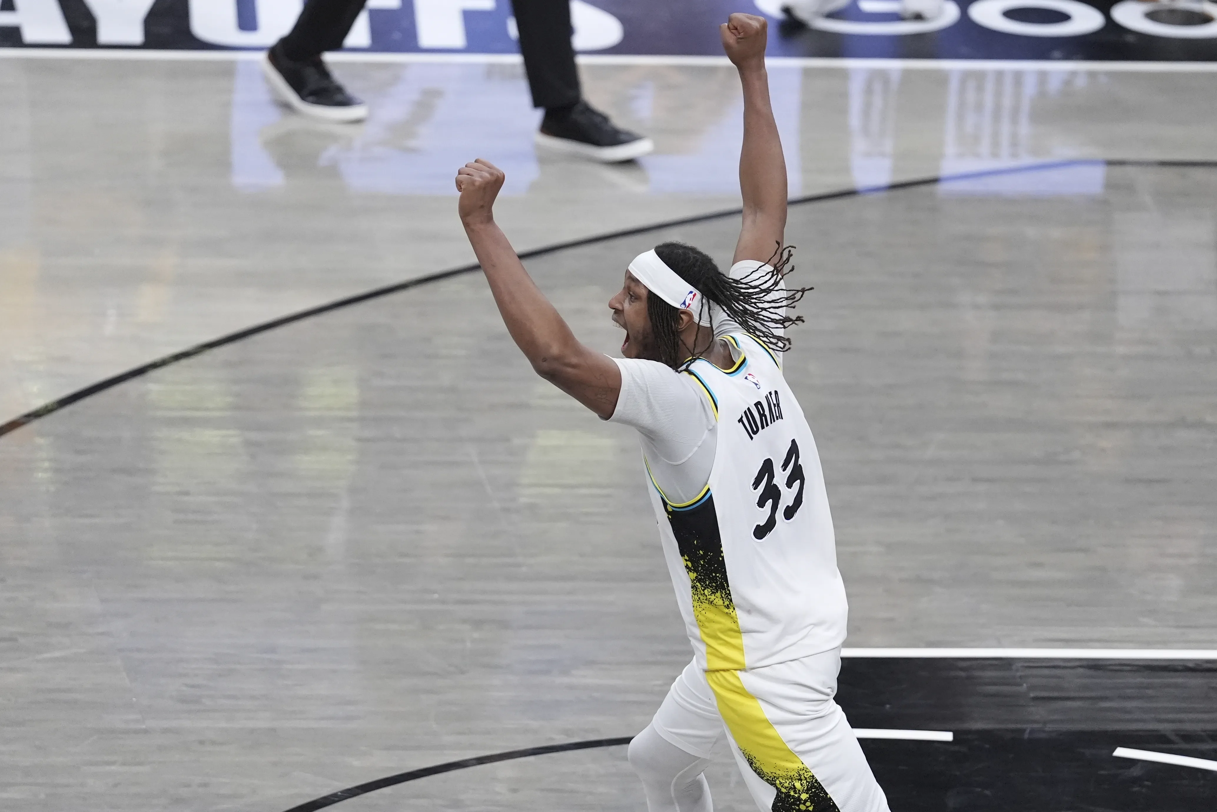 Haliburton anotó 26 puntos y distribuyó diez asistencias para mejorar a un récord de 9-0 en partidos de playoffs en casa. Esta serie de postemporada, llena de roces, terminó de esa misma manera con un altercado entre los equipos en el centro de la cancha.
