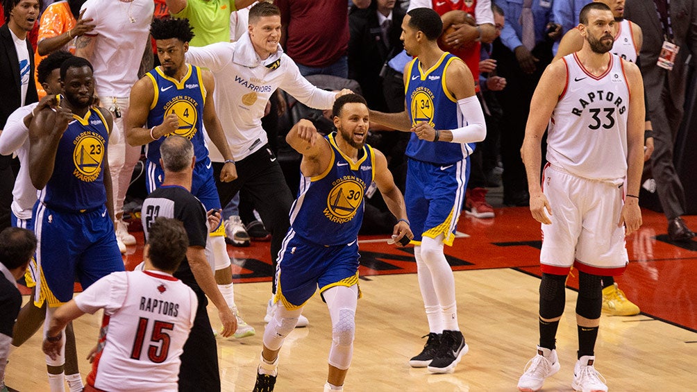 Curry y Thompson, los 'Splash Brothers', salvaron la temporada de Golden State por ahora. Se combinaron para atinar tres triples consecutivos en la recta final del encuentro, luego que Toronto había tomado una delantera de seis unidades con poco menos de tres minutos y medio por disputar, frente a los delirantes fanáticos, vestidos con camisetas rojas.