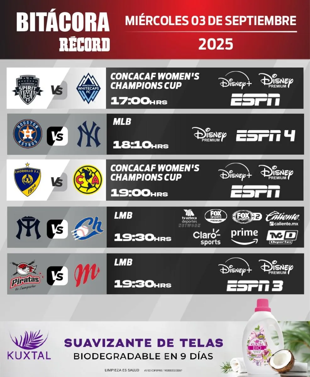 Los Diablos Rojos quieren acercarse a la Serie de Rey, además la Concacaf W Champions Cup, regresa con su jornada 2 donde América Femenil volverá a jugar. Todo esto y más en la agenda de este miércoles 3 de septiembre del 2025. A continuación te presentamos los partidos a seguir de este día.