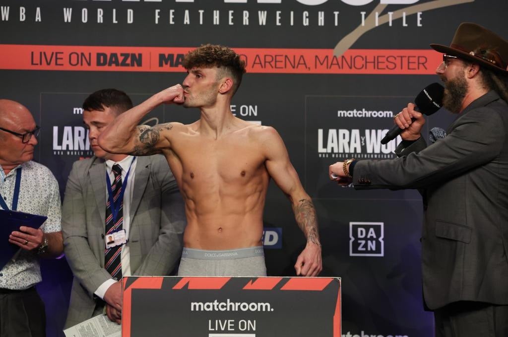 Leigh Wood marcó 125.9 libras, por lo que este sábado tendrá la oportunidad de recuperar la faja que Lara le arrebató a principios de año, pero en dado caso de que el mexicano obtenga el triunfo, el título de la AMB quedará vacante.