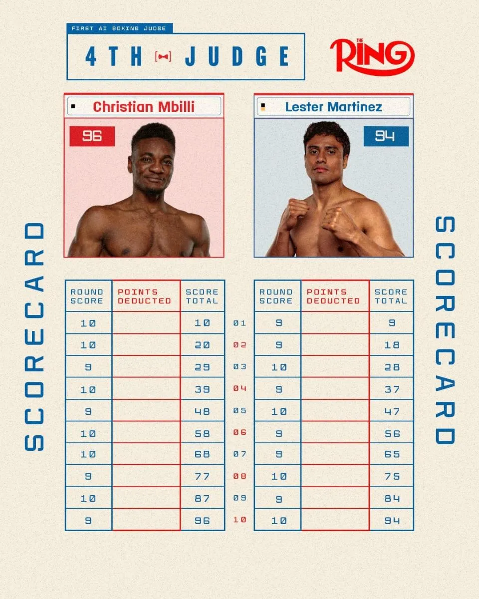 Christian Mbilli y Lester Martínez regalaron la pelea del año. En una auténtica guerra sin descanso, el campeón interino supermediano y el orgullo de Guatemala terminaron en empate por decisión dividida, con tarjetas de 96-94, 97-93 y 95-95.