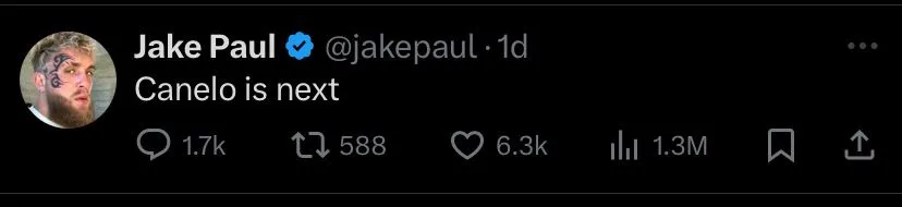 Poco tiempo después de su pelea contra Chávez Junior, Paul mandó un mensaje en sus redes sociales, donde manda un breve pero directo mensaje al campeón de Jalisco. “Canelo is the next”, o Canelo es el siguiente, fue el mensaje que dejó Paul.