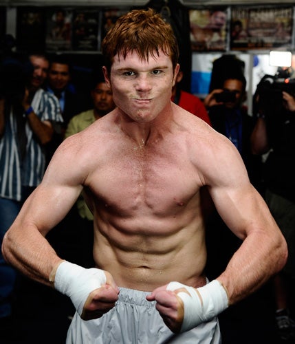 Saúl Álvarez finalizó su preparación para exponer su título Superwelter del CMB ante Ryan Rhodes (FOTO: GENE BLEVINS-HOGAN)