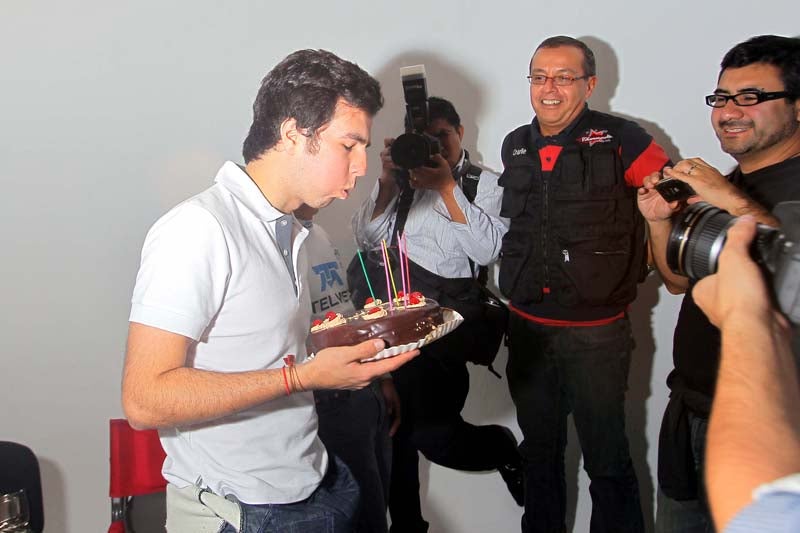 Checo Pérez cumplirá 22 años y la producción del 'Cineminuto 2012', festejó con un pastel. FOTO: CIRO GUTIÉRREZ
