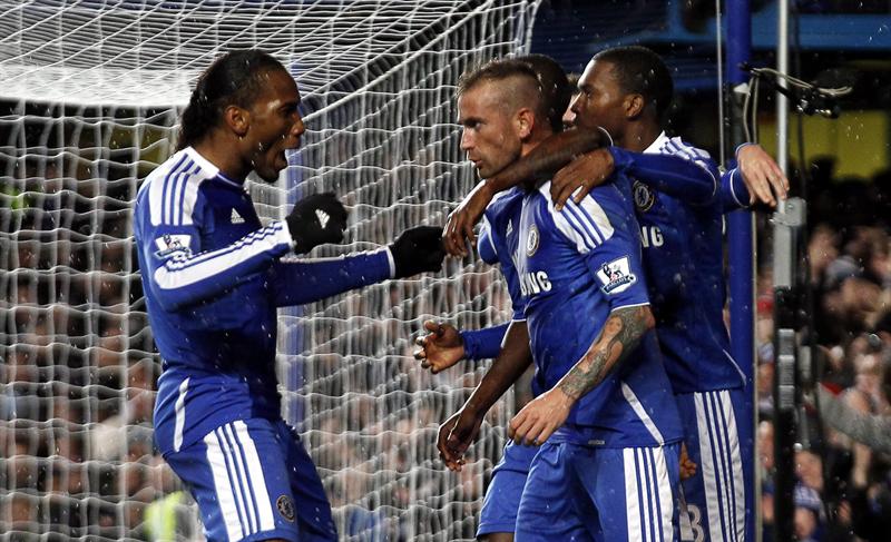 Raul Meireles y Didier Drogba celebran el tanto. FOTO: EFE