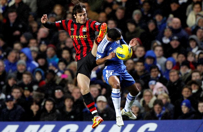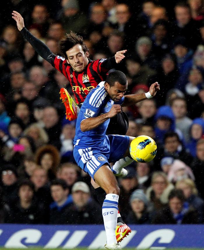 shley Cole salta por el balón junto con David Silva. FOTO: EFE