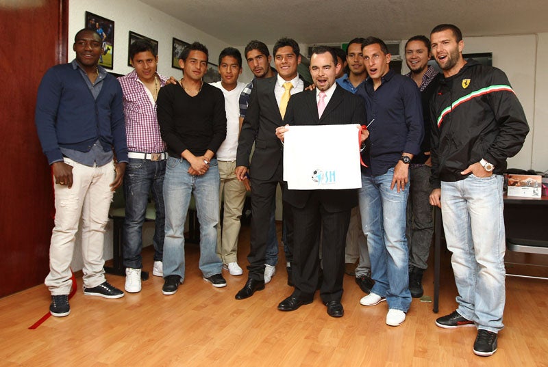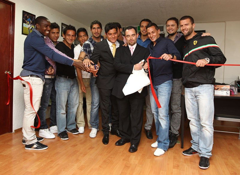 Varios jugadores celestes lo acompañaron enla apertura de su nuevo negocio. FOTO: MIGUEL PONTÓN