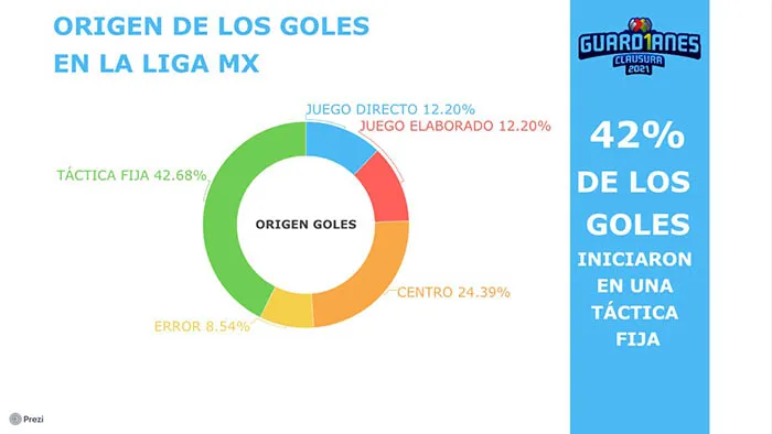 El 8.5 por ciento en errores en la salida del rival, el 24 por ciento en centros y únicamente el 12 por ciento en jugadas elaboradas. Los goles a balón parado van de la mano a distracciones del rival por eso se vuelven partidos donde los equipos antes de proponer intentan aprovechar los errores del rival.