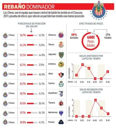 Realidad: Las Chivas son el equipo que mejor trata el balón en el futbol mexicano. El cuadro tapatío sólo ha fallado 12% de los 4 mil 661 pases que ha dado en el torneo.