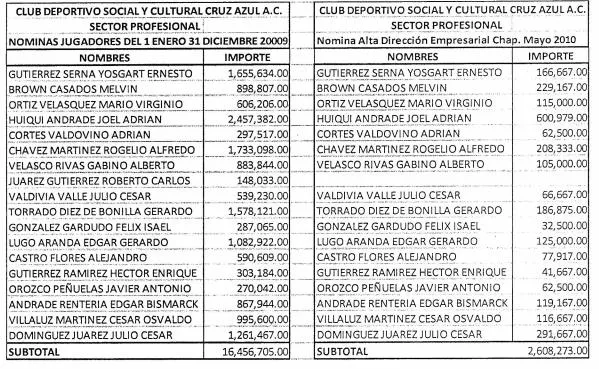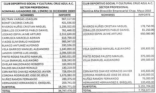 Esa doble nómina o contabilidad es clara con los documentos que aquí exhibimos, donde se establece que del mes de enero a diciembre del 2009, la nómina conformada por 36 jugadores superaba los 34 millones de pesos. Es decir, dos millones 893 mil 693 pesos mensuales. A esta cifra deben sumarse otros pagos a jugadores del primer equipo, como los realizados en mayo de ese mismo año, y que suman siete millones 759 mil 977 pesos. Tener gastos anuales superiores a los 42 millones de pesos en jugadores, sin contar los honorarios del cuerpo técnico, la logística y los viajes, en aquel tiempo era una bestialidad. Con facilidad superaban los 50 millones, que al tipo de cambio de 2009 (13.49) significarían 3.7 millones de dólares anuales, a los que habría que sumarle los costos de las contrataciones, donde se despachaban con la cuchara grande.