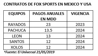 Fox Sports México tiene contenidos muy valiosos para la industria, además de los derechos de la Fórmula 1, la Champions League y otros, tiene contratos vigentes con Santos Laguna, Pachuca y León hasta el 2024, con Monterrey y Toluca hasta el 2023, además de Querétaro con quien tiene convenio especial con Imagen TV.