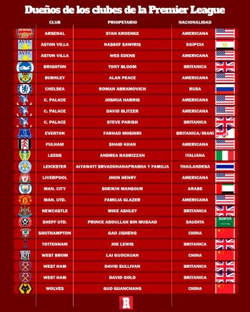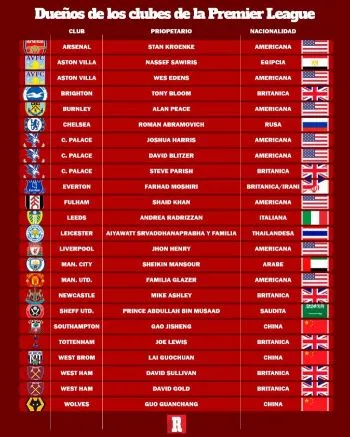 Con esta compra ahora hay más empresarios estadounidenses que británicos en la Premier League. Con esto, suman ya ocho los equipos que cuentan con un dueño o un accionista mayoritario del país de las barras y las estrellas que invierten en el 'soccer' contra solo seis inversionistas ingleses.