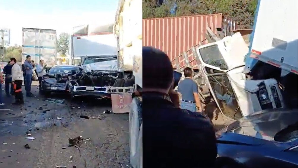 El accidente fue muy aparatoso con grandes camiones de carga… pero a pesar de esto, no se reportaron personas con lesiones mayores.