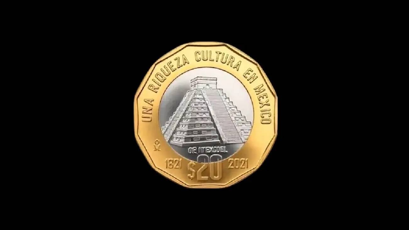 La moneda de 20 pesos conservará su forma dodecagonal y presentará un diseño enfocado en el patrimonio cultural de México. En el anverso permanecerá el Escudo Nacional, mientras que el reverso mostrará el Templo de Kukulkán, en la zona arqueológica de Chichén Itzá.