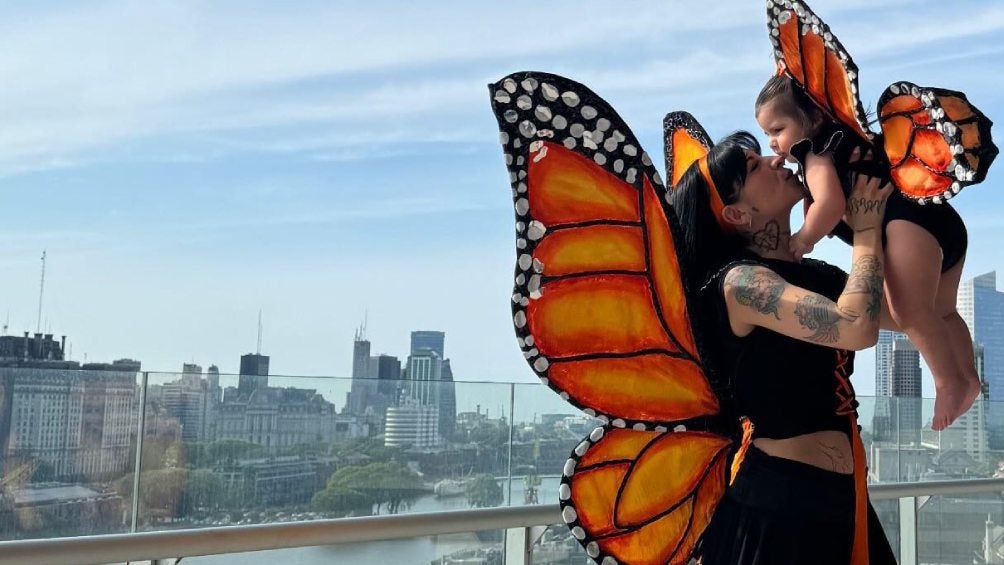 Madre e hija coordinaron su disfraz, pues en otras fotos que surgieron en las redes, Inti se deja ver con un par de alas de mariposa, al igual que su mamá.