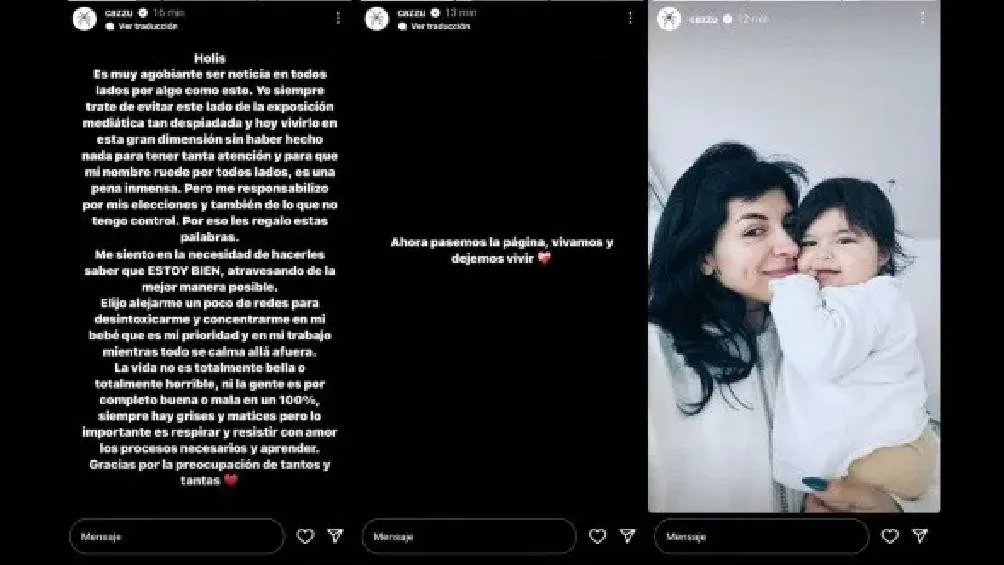 “Es muy agobiante ser noticia en todos lados por algo como esto. Yo siempre traté de evitar este lado de la exposición mediática tan despiadada y hoy vivirlo en esta gran dimensión, sin haber hecho nada para tener tanta atención y para que mi nombre ruede por todos lados, es una pena inmensa (…) Me siento en la necesidad de hacerles saber que estoy bien, atravesando de la mejor manera posible. Elijo alejarme un poco de redes para desintoxicarme y concentrarme en mi bebé, que es mi prioridad, y en mi trabajo mientras todo se calma”, expresó la trapera.