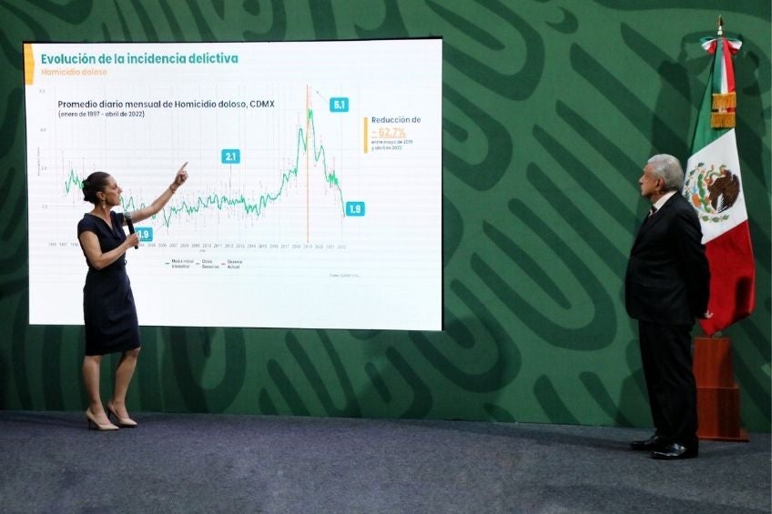 "Estamos por debajo de la ciudad de Nueva York, en términos de homicidios dolosos diarios por 100 mil habitantes; por debajo de Florida, por debajo de Nueva Orleans, por debajo de Los Ángeles; y por debajo, también, de otras ciudades del país, de Bogotá, de Medellín, solamente por encima de ciudades como Washington. Esto hace a la Ciudad de México una de las ciudades más seguras del mundo", indicó.