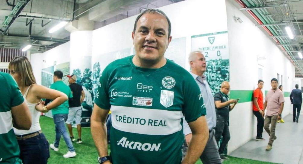 "Fue tomada cuando por casualidad coincidimos con Cuauhtémoc como jugador, después se la pidió regalada Ángel García a 'El Ray', con el fin de chantajear al entonces gobernador", se aprecia en la lona.