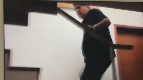 Las imágenes muestran al expresidente, parado en las escaleras pidiendo a los uniformados que le den minutos para comunicarse con sus abogados; sin embargo, cuando éste comienza a subir al segundo piso de su casa se puede observar el momento justo en el que saca una pistola del bolsillo derecho de su pantalón.