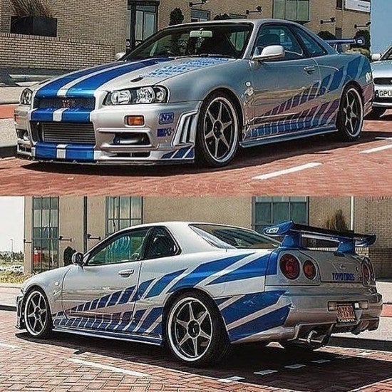 El Nissan Skyline R34 GT-R es una versión única del coche utilizado en el rodaje, ya que es el único modelo que contaba con turbo. Además, cuenta con diferentes modificaciones realizadas por el propio actor.