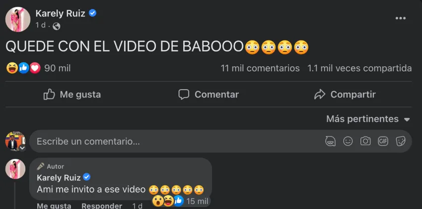 Fue a través de Facebook que Karely Ruiz reveló que había quedado impactada con el video del rapero mexicano. “Quedé con el video de Baboo”, publicó, mientras que después reveló que la invitaron.