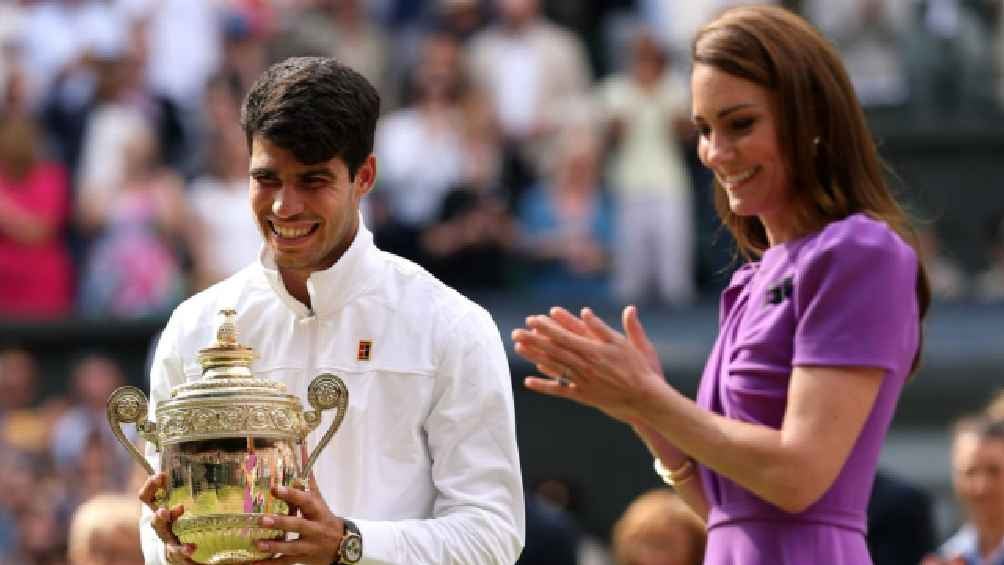 Después de que Carlos Alcaraz venció por parciales de 6-2, 6-2 y 7-6 al serbio Novak Djokovic, fue la princesa Kate Middleton, en medio de aplausos por todos los presentes en el All England Lawn Tennis and Croquet Club, quien entregó al español el trofeo de campeón del torneo de Wimbledon, uno de los cuatro Grand Slams del año.