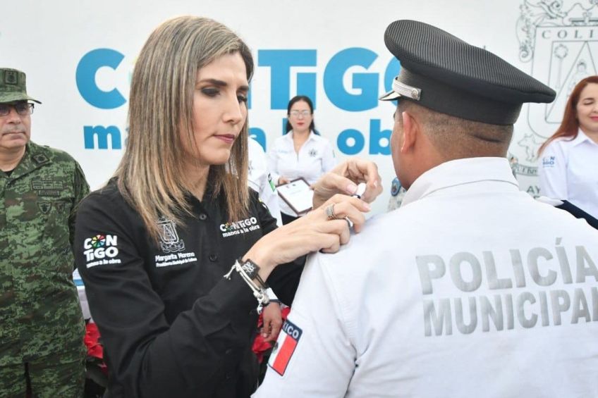 Por primera vez en la historia del Ayuntamiento de Colima, que hoy encabeza Margarita Moreno González, cuatro agentes municipales recibieron su ascenso al Grado de Policía Tercero, en el marco de la conmemoración del Día del Policía.