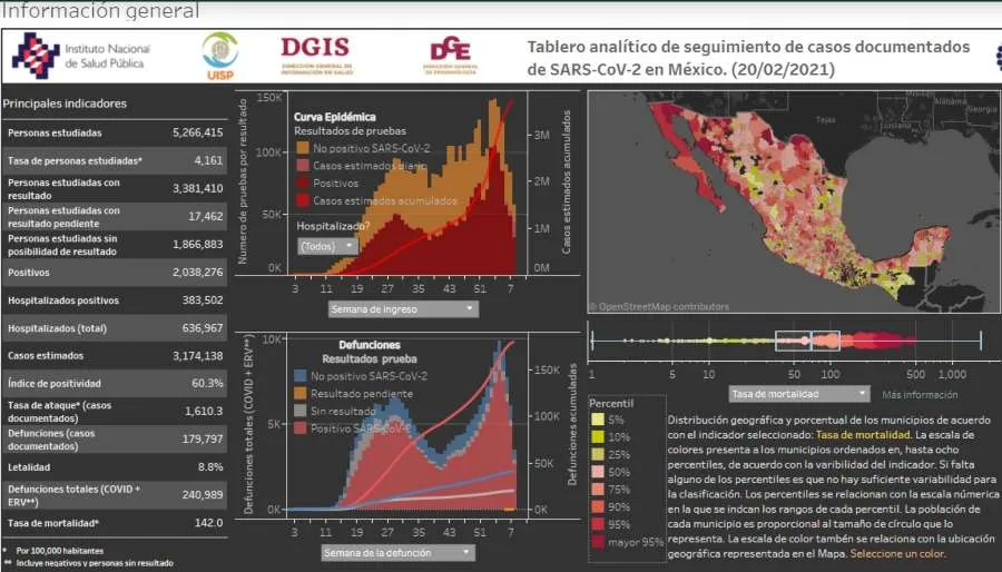 La Secretaría de Salud informó este sábado 20 de febrero en su conferencia de prensa diaria, que los casos positivos de Covid-19 confirmados en México llegaron a la cifra de 2 millones 38 mil 276 infectados, un aumento de 7 mil 785 contagios en el último día.
