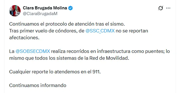 Clara Brugada, la Jefa de Gobierno de la Ciudad de México, ya ha confirmado en redes sociales que no hay grandes afectaciones; sin embargo, reportes aún más recientes han confirmado la caída de un semáforo y de un árbol en un par de alcaldías de la CDMX.