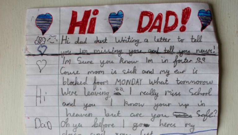 "Adiós papá, te amo", es el texto redactado por el pequeño niño.