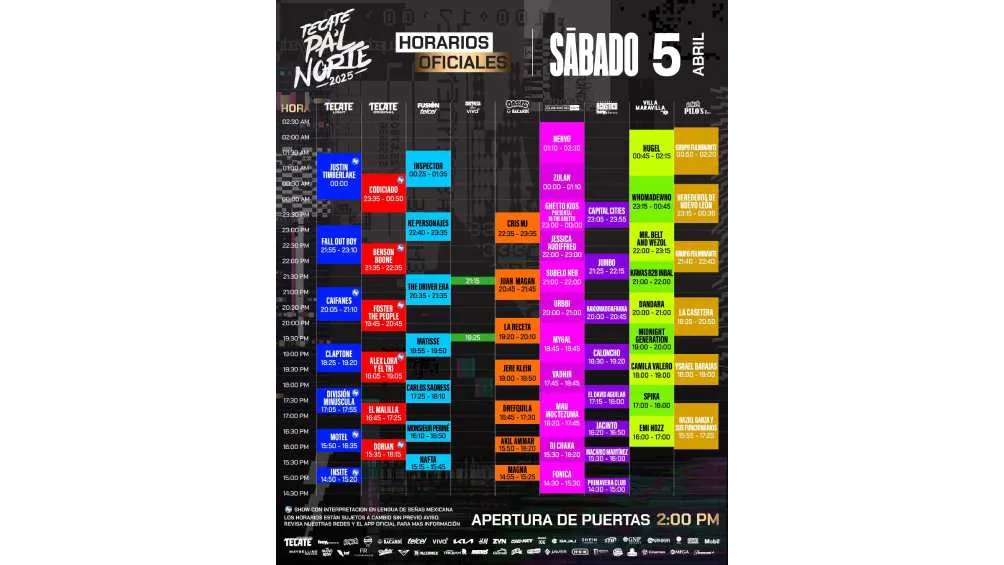 El festival Tecate Pa’l Norte 2025 ya está a la vuelta de la esquina y, con los boletos prácticamente agotados, la emoción por uno de los eventos más esperados del año crece cada día. A menos de una semana de su arranque, los organizadores han revelado los horarios para las presentaciones que se llevarán a cabo los días 4, 5 y 6 de abril en el Parque Fundidora de Monterrey, Nuevo León.
