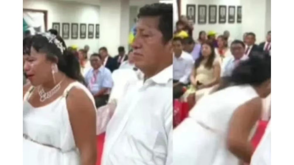 En el video de TikTok se ve a la mujer entre lágrimas con la voz entrecortada responde: "Perdónenme no acepto", después sale corriendo de la ceremonia religiosa hacía la calle.