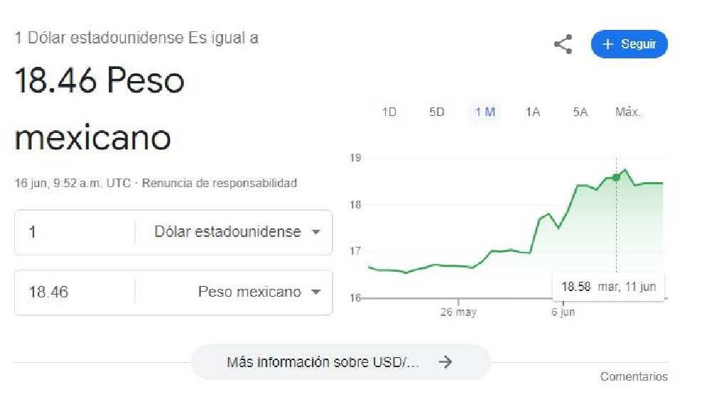 Este domingo 16 de junio el dólar arranca la jornada con una cotización de $18.46 pesos, lo que significa que la moneda mexicana mantuvo su valor frente a la divisa estadounidense, tomando en cuenta su valor al inicio del día anterior que fue el mismo.