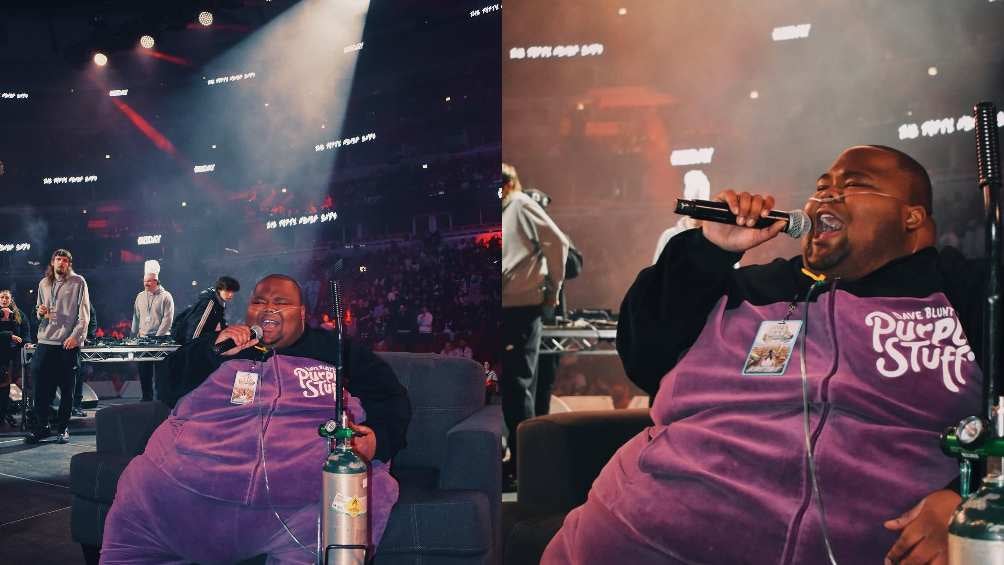 En redes sociales ha llamado la atención el caso del rapero estadounidense Dave Blunts, quien durante una reciente presentación, apareció en el escenario sentado en un sillón y conectado a un tanque de oxígeno mientras cantaba, esto debido a sus problemas de salud relacionados con los 230 kilos que pesa.