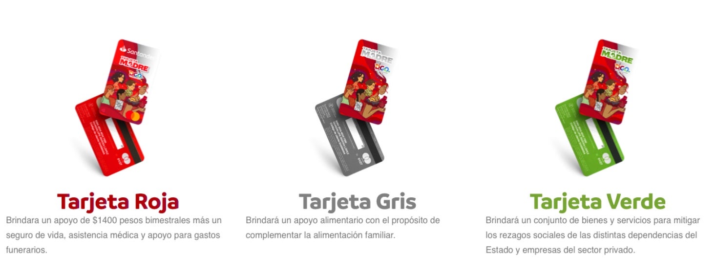 Hay tres tipos de tarjetas diferentes, con diversos apoyos, pero todos en beneficio de las mujeres del Estado, y la entrega de cada tarjeta dependerá de las necesidades de cada mujer: