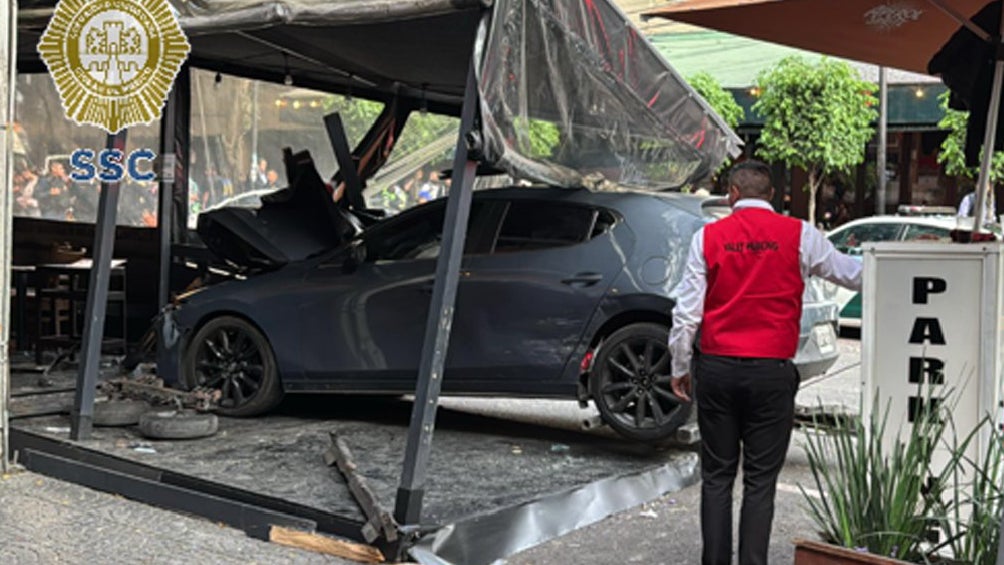 Una automovilista se estrelló contra las mesas del restaurante Quebracho ubicado entre las calles Río Lerma & Río Guadalquivir, en la colonia Cuauhtémoc.