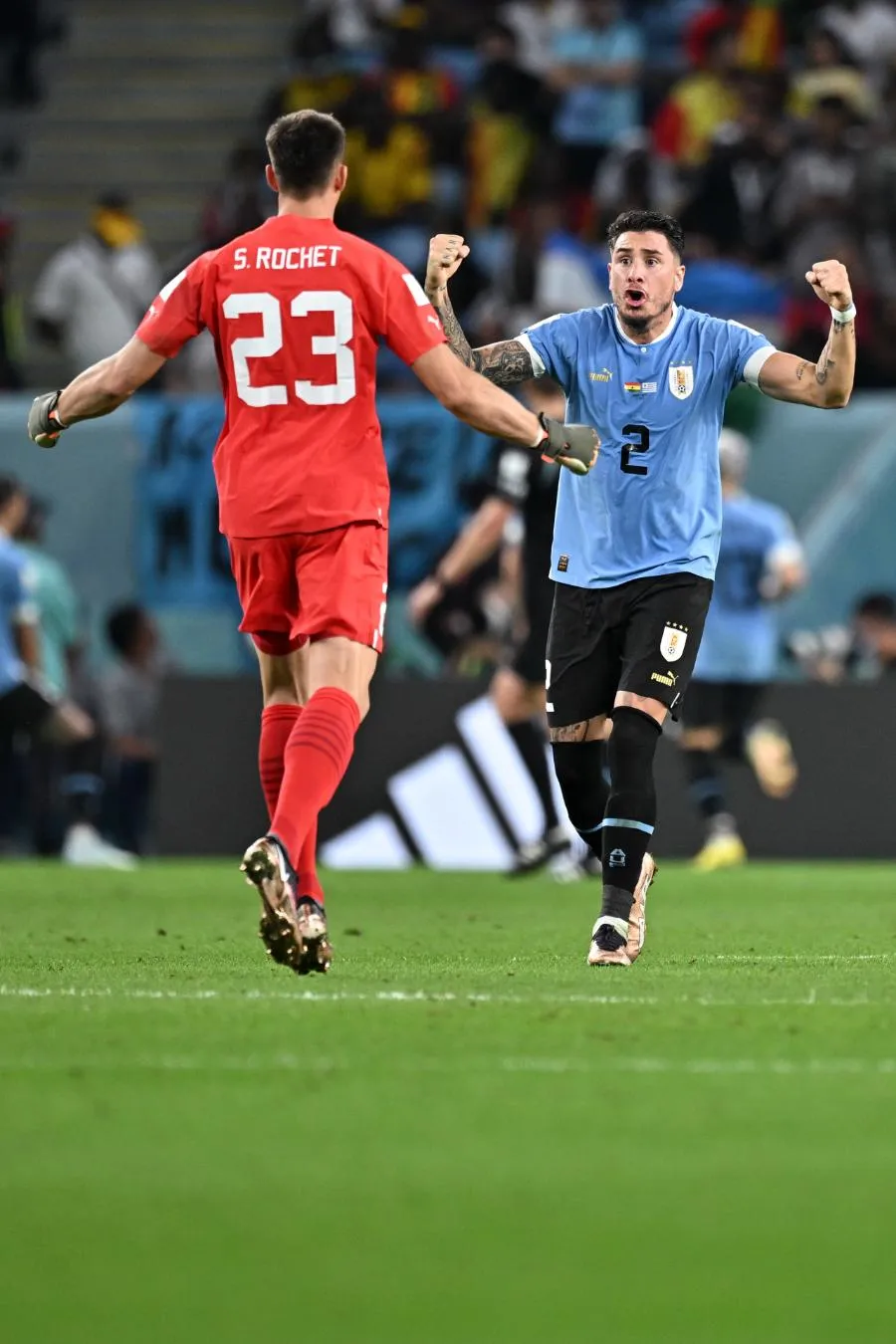 "Amargura, tristeza, eso es lo que siento yo, lo que siente el plantel y lo que siente todo Uruguay. Por otra parte orgulloso porque se dejó todo, no jugamos como lo veníamos haciendo, pero la entrega estuvo al 100%, no se nos dio por pequeños detalles y eso nos sacó de la Copa del Mundo", dijo Rochet a Telemundo Canal 12.