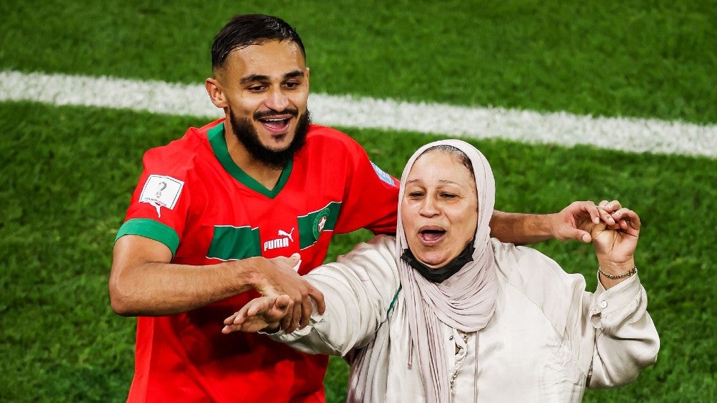 Los jugadores celebraron junto a sus compañeros la hazaña deportiva, pero Sofiane Boufal lo celebró a lo grande con la que siempre ha estado ahí para apoyarlo, su madre, a quien invitó a bailar en la cancha al ritmo de la canción del Mundial.