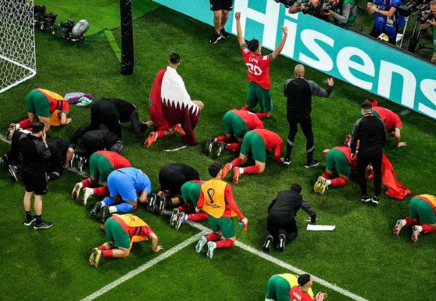 Acto histórico en el Mundial de Qatar 2022. Marruecos venció 1-0 a Portugal y con ello amarró el pase a la Semifinal de la Copa del Mundo, convirtiéndose en el primer equipo africano en esta instancia en toda la historia.
