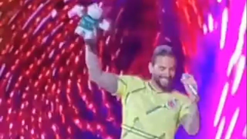 A través de un video publicado por TUDN, se muestra cómo el colombiano no despreció al personaje representativo de las farmacias mexicanas, por el contrario decidió tomarlo mientras cantaba, a lo que los presentes le aplaudieron con euforia.