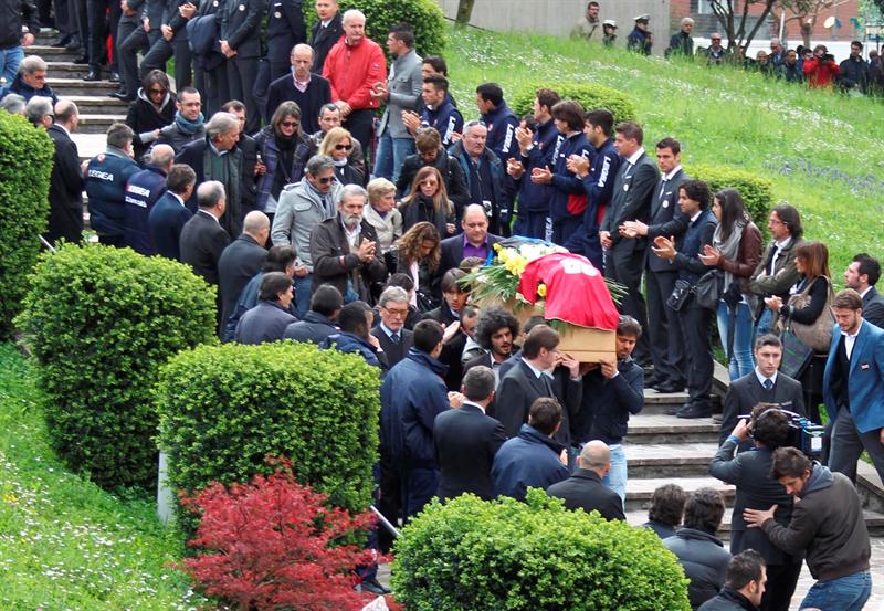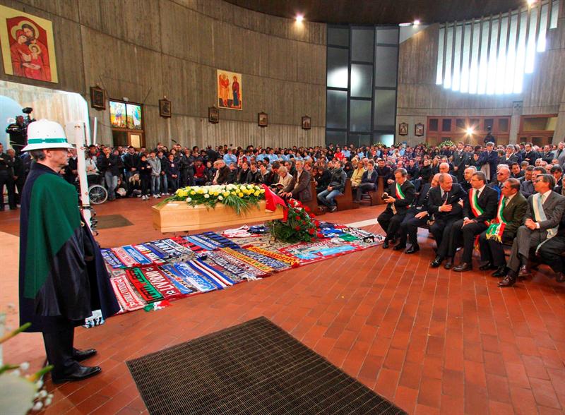 Aficionados, jugadores, cuerpo técnico y directivos del futbol italiano dieron el último adiós a Morosini. FOTO: EFE