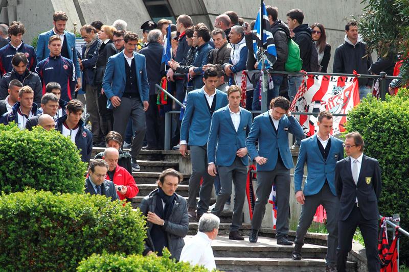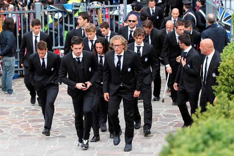 Los compañeros de equipo de Morosini llegan al funeral. FOTO: EFE
