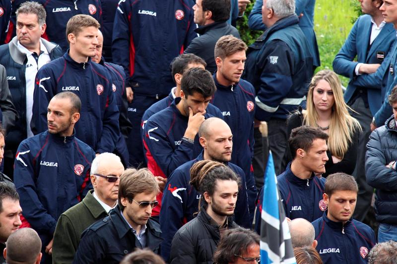 Los jugadores de Livorno dan el último adiós a Piermario Morosini. FOTO: EFE