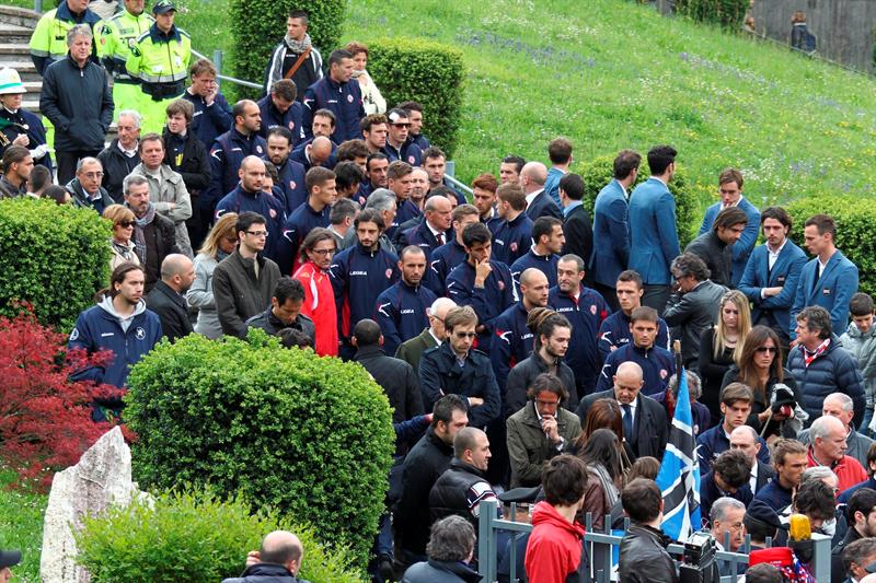 La plantilla del Atalanta llega al funeral del centrocampista del Livorno. EFE